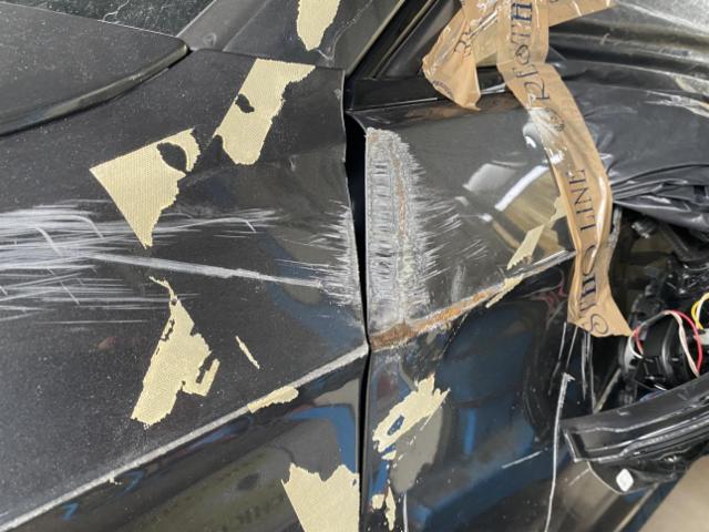 Linke Seite beschädigt. Tür vorne links ist eingedrückt. Tür hinten links ist eingedrückt.
