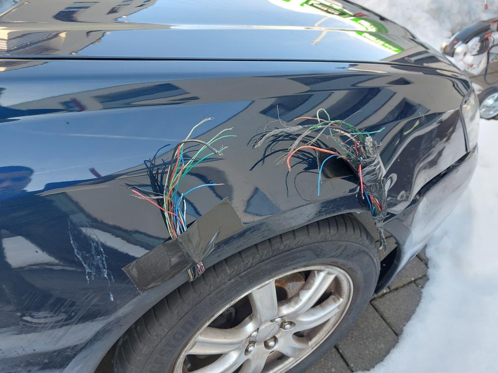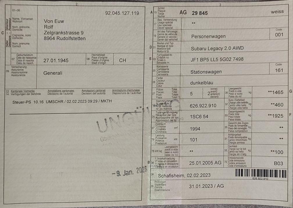 Diverse Kratzer, Dellen und Schäden am ganzen Auto (Siehe Fotos): Seitenschweiler R gerissen, Kotflügel R verbeult, Stossstange gerissen, Scheinwerfer R verkratzt, Radhausschale penlt, Kabelbaum komplett gerissen ABS Einheit, Kabel der Hupe gerissen, Nebelscheinwerfer Abdeckung VR fehlt (für Abschlepphacken), Stossdämper V, Stahlfelgen Kaputt, 4x Neue Winterreifen, Luftfilterkasten unterteil, Raddeckel, Seitenspiegel R. Das Risiko liegt somit vollumfänglich beim Käufer. Um Missverständnisse zu vermeiden kann das Fahrzeug auf Voranmeldung besichtigt & getestet werden. Wird davon bewusst kein Gebrauch gemacht, liegt die Verantwortung beim Käufer. Nach Zuschlag, keine Nachverhandlungen möglich. Ab Platz ohne Garantie, Wandelung und Minderung werden wegbedungen. Abholung vom Fahrzeug spätestens 10 Tage nach dem Zuschlag. Spätere Abholungen können abgemacht werden, werden jedoch mit Fr. 8.- / Tag in Rechnung gestellt.