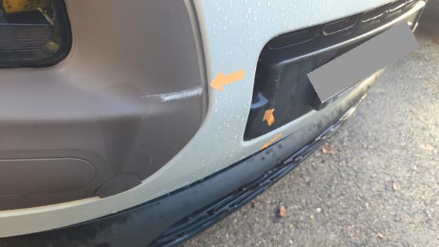 Front eingedrückt. Kotflügel vorne rechts eingedrückt. Kotflügel vorne links eingedrückt. Motorhaube eingedrückt. Frontblech/Maskenblech eingedrückt.