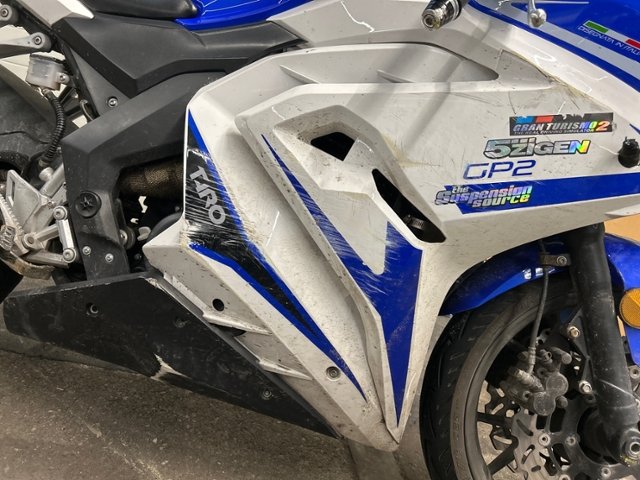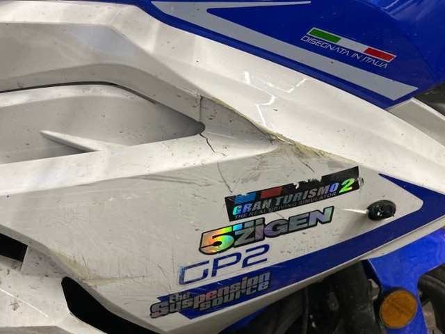 Rechte Seite beschädigt. Ist auf die rechte Seite gefallen. Verschalung oben rechts gebrochen. Verschalung unten rechts gebrochen. Verschalung hinten rechts gebrochen.