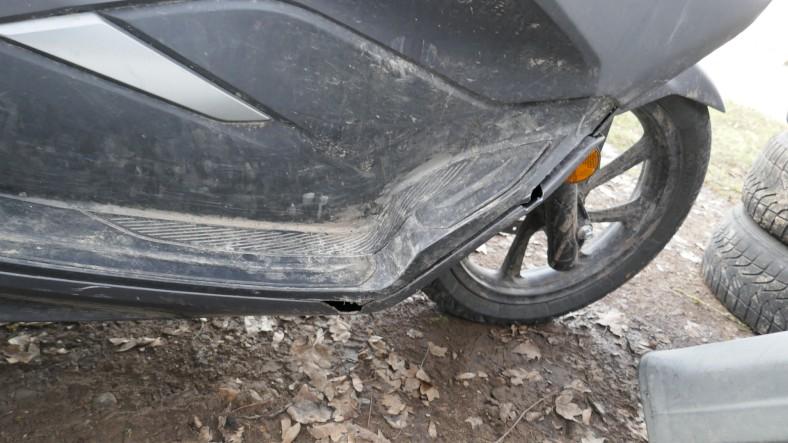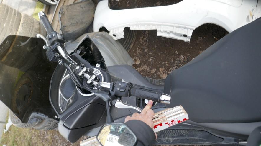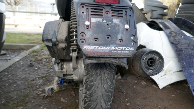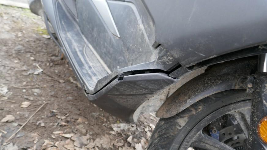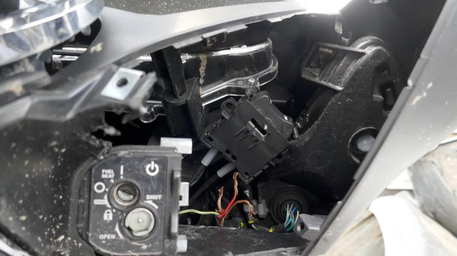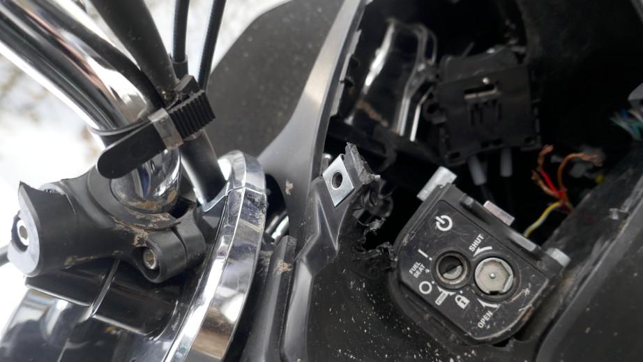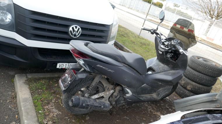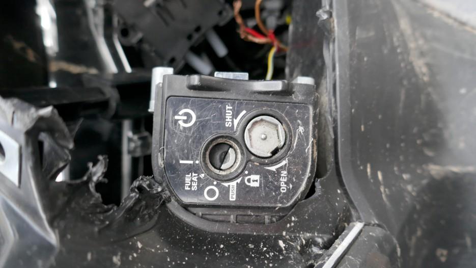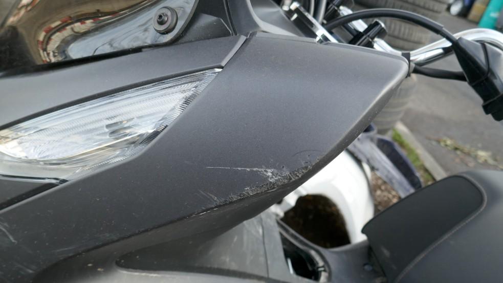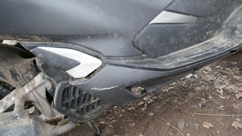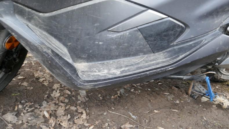 VOLÉ / RETROUVÉ : Serrure et câblage partiellement arrachés. Direction forcée. Té de fourche endommagé. Tablier, carénages avant gauche et droit, carénages arrière gauche et droit, bas de caisse et marchepieds gauche et droit, échappement, bavette arrière, poignée arrière, leviers gauche et droit, embouts de guidon gauche et droit, rétroviseur gauche éraflés, endommagés, brisés. Couvercle de trappe à carburant arraché. Selle déformée, endommagée. Moteur ne démarre pas. Risques sur moteur, cadre et guidon. / OBSERVATIONS : Kilométrage visible en connectant les câbles arrachés. Le moteur ne démarre pas - raison inconnue.