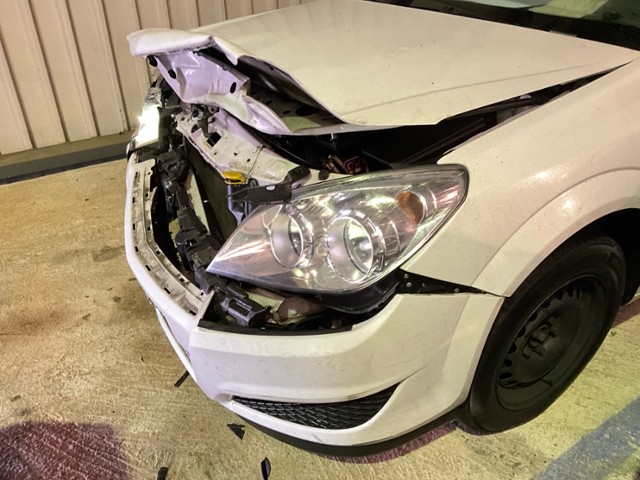Front eingedrückt. Frontblech/Maskenblech eingedrückt.
