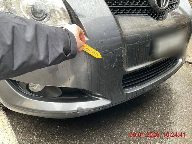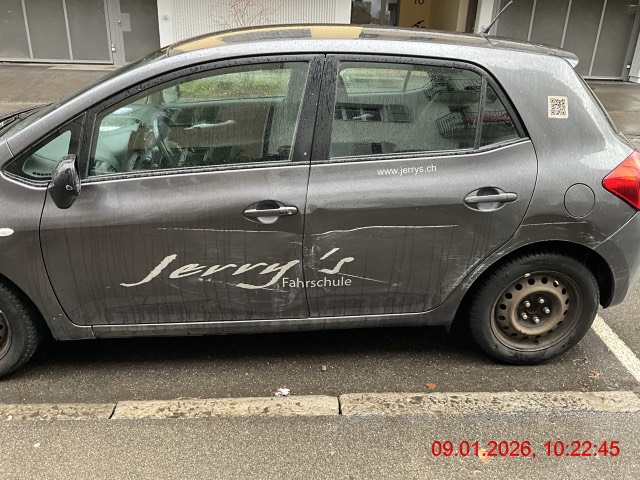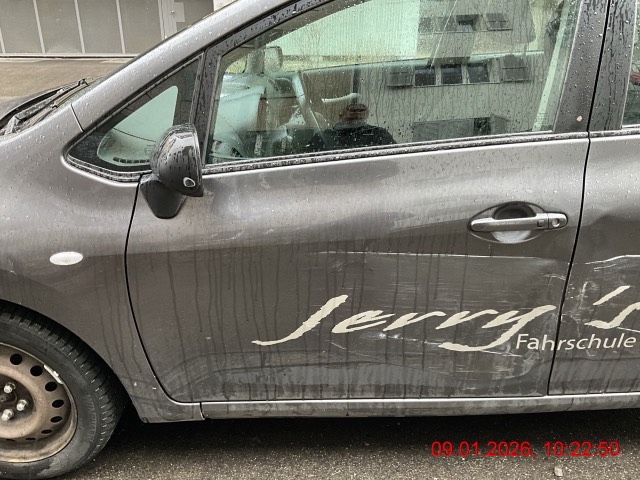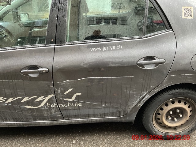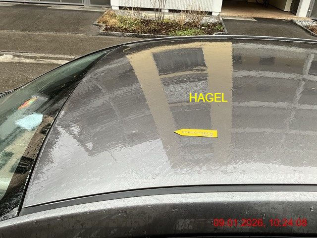 Beschreibung der Schäden: Seitentür vorne und hinten links, Schwelle links, Seitenwand links, Stossfänger hinten deformiert und zerkratzt. Vorbestandene Schäden: Vorne mitte: Hagelschaden Mitte (Dach/Boden): Hagelschaden