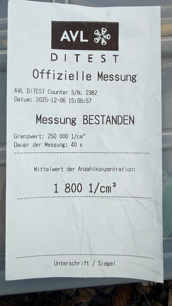 Dieselpartikelfiltertest wurde erfolgreich durchgeführt (Schriftlicher Ausdruck ist vorhanden).