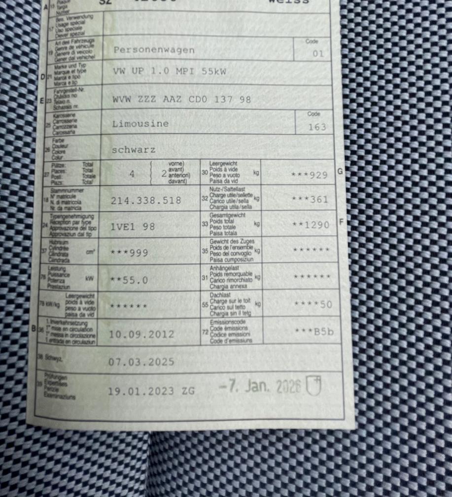 VW UP 1.0 MPI 55kW