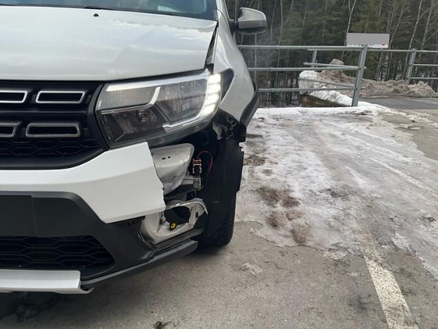Aufhängungsteile vorne links beschädigt. Lenkgetriebe ist beschädigt.