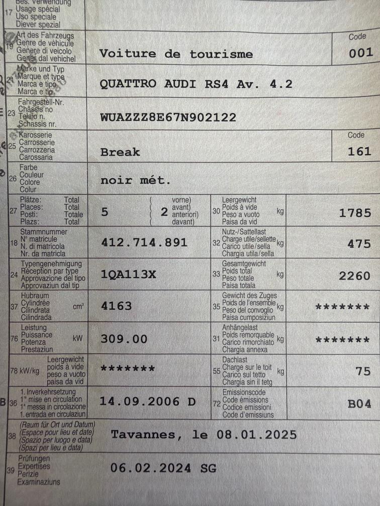 Ein Schöner seltener, AUDI RS4 Av. 4.2 V8 420PS Phantom Black Pearl - Top Zustand ! Für jg. & Km… - KW Gewindefahrwerk - Bremsen Neuwertig ! - Top Ausstattung ! - Mängel gemäss Fotos ( Kleinichkeiten ) - es wurde kein Werkstatttest durchgeführt