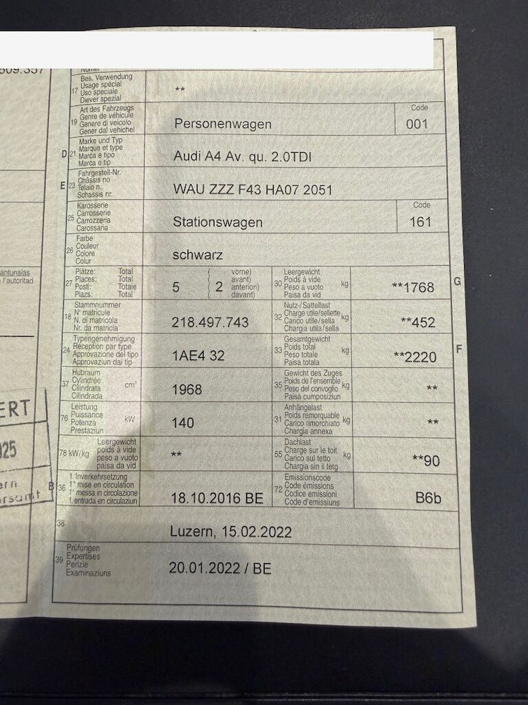 Keine technische Prüfung (Werkstatttest) vorgenommen Diverse Schäden an Karosserie/Lack. Fahrzeug ab Platz, ohne Garantie und Aufbereitung. Dieselpartikelfilter geprüft - Messwerte i.O. Steinschlag Frontscheibe Bedienung für Standheizung vorhanden Motor Getriebe Vorderachse Hinterachse Airbags ausgelöst: 0 unbekannt ( Abfallcode 16.01.04ak )