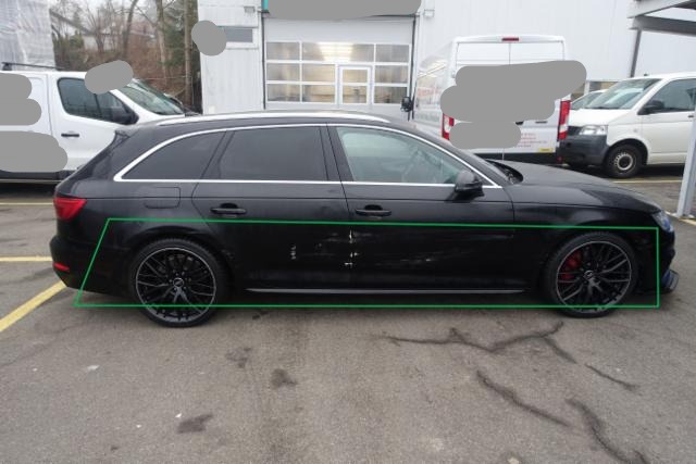 Rechte Seite beschädigt. Schweller rechts ist eingedrückt. Tür vorne rechts ist eingedrückt. Tür hinten rechts ist eingedrückt.
