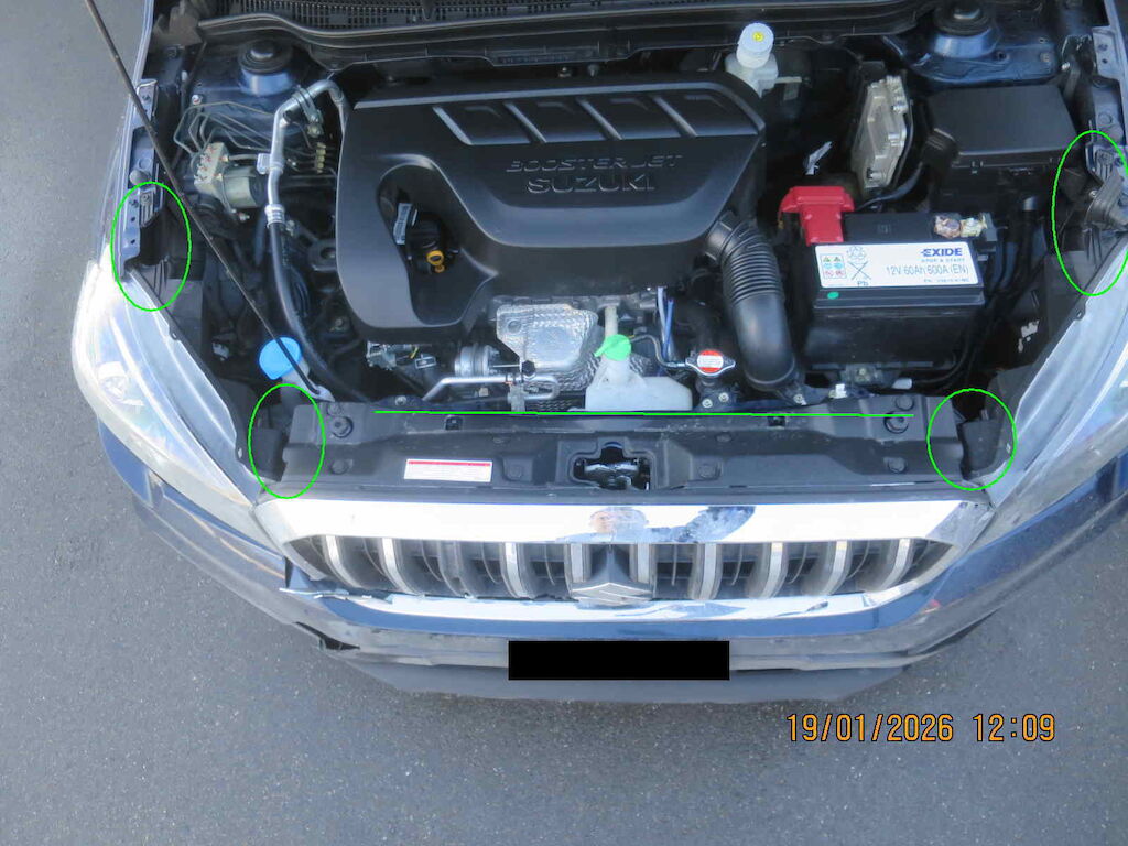 Motorhaube deformiert, Sst. vo und Grill gerissen, beide Scheinwefer gebrochen, alle Kühler deformiert, Lüfterzarge gerbochen, beide Kotflügel leicht deformiert, Sst Träger beschädigt Motor Getriebe Vorderachse Hinterachse Airbags ausgelöst: 0 unbekannt ( Abfallcode 16.01.04ak )