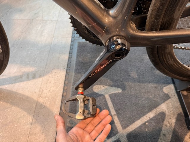 Die Pedale werden demontiert und das Velo ohne!