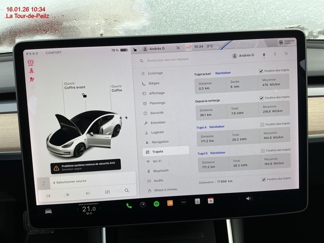 Lenkrad: Multifunktionslenkrad, Airbag: Seiten- und Kopfairbags, Garantie: 8 Jahre oder 192'000 km auf Elektroantriebssystem und Batterie (ab 1. Inv.), Reifenreparatur-Set (Tire Fit), Aussenspiegel rechts und links beheizt, elektrisch verstell- / und einklappbar, Assist: Lenkassistent - Mit den neuen Tesla Vision-Kameras, Sensoren und der erhöhten Rechenleistung kann Ihr Tesla nun über komplexere Strassenführungen navigieren., Sitze: Vordersitze elektrisch verstellbar 12-fach, Media: Touchscreen, Reifendruck-Kontrollanzeige, Licht: LED-Tagfahrlicht, Dekor: All Black Interior, ISOFIX Kindersitzvorrichtung, 12-Volt-Steckdose vorne, Ladekabel, Assist: Notbremsassistent, Wegfahrsperre elektronisch, Licht: Drittes Bremslicht LED, Assist: ABS und TCS, Media: Media Player - Radio - Bluetooth - Streamen - Spotify - Caraoke - TuneIn - Tidal, Assist: Autopilot Basic, Räder: Leichtmetallfelgen 18J mit Pneu 235/45 R18 8,5x18J, Licht: Nebelscheinwerfer, Assist: Parkassistent, Kabinenkamera, Assist: Rückfahrkamera, Klima: Klimatisierungsautomatik, Assist: Spurhalteassistent, Media: Bluetooth, Media: Navigationssystem mit Onboard-Karten, Media: Soundsystem, Polster: Kunstleder-Polsterung, Innenraumbeleuchtung - Deckenleuchten - Ambientebeleuchtung - Leseleuchten - Lenkradbeleuchtung, Assist: Kollisionswarnung, Lenkrad: Lenkrad elektrisch längs- und höhen-verstellbar, Sitze: Rücksitze heizbar, Supercharger Network Access + Pay-as-you-go, Licht: Nebelschlussleuchte, Servolenkung, Assist: Adaptive Cruise Control, Bordcomputer, Licht: LED Scheinwerfer, Lenkrad: Lenkrad längs- und höhenverstellbar, Garantie: 4 Jahre oder 100'000 km (ab 1. Inv.), Keyless Entry, Airbag: Airbag Fahrer und Beifahrer, Heckscheibenheizung, Sitze: Rücksitze, Umklappar, Getönte Scheiben, Lackierung: Uni-Lackierung, Airbag: Airbag Beifahrer deaktivierbar, Sitze: Kopfstützen verstellbar, Getriebe: Direktantrieb, Panorama-Glasdach, Sitze: Vordersitze heizbar, Heckklappe elektrisch, Media: Bluetooth Freisprecheinrichtung, Assist: Park Distance Control (PDC)
