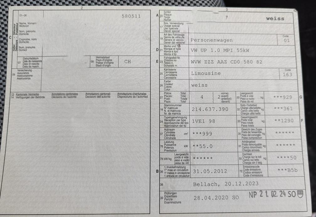 VW UP 1.0 MPI 55kW