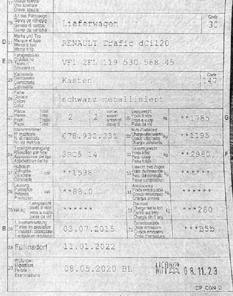 Hiermit bieten wir unseren Renault Trafic dCi 120 an. Fahrzeug wurde nicht geprüft. Folgende Mängel sind bekannt: -Batterie defekt -Service fällig -MFK fällig -Trennwand ausgebaut (halbhoch siehe Foto) nicht mehr vorhanden -Bremsen defekt "Eisen auf Eisen" Fahrzeug ist so nicht fahrbar und muss abtransportiert werden. -Hagelschaden siehe Fotos -Fahrersitzpolster defekt siehe Fotos -Reifen nahe Verschleissgrenze alle zu ersetzen -diverse Karosserieschäden /Kratzer/Beulen und Dellen siehe Fotos