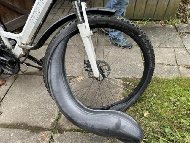 Vorderrad beschädigt. Gabel Risiko.