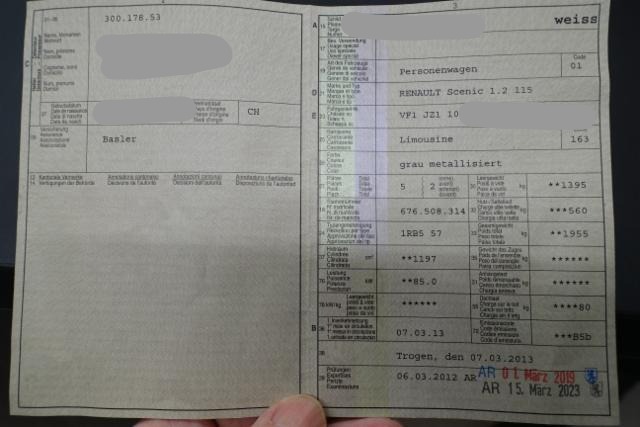 Fahrzeugdokumente vorhanden.