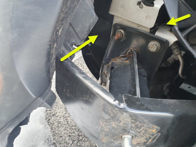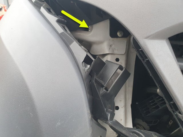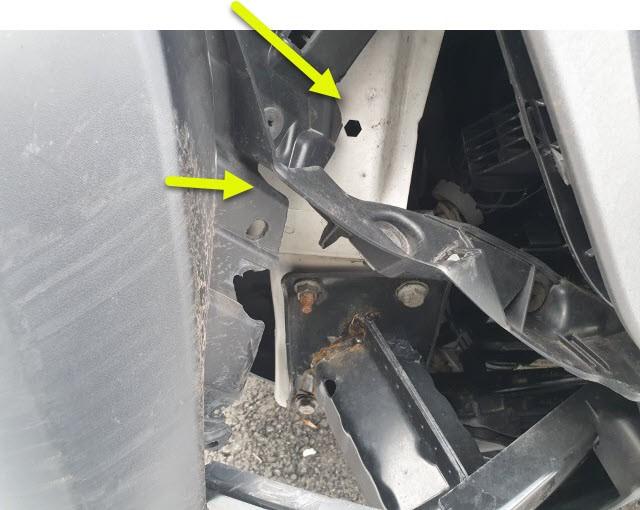 Front eingedrückt. Frontblech/Maskenblech eingedrückt. Längsträger vorne rechts gestaucht.