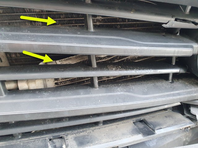 Risiko Motor. Ladeluftkühler eingedrückt. Alle Kühler vorne sind eingedrückt.