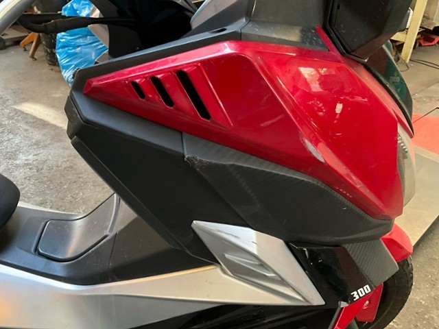 Rechte Seite beschädigt. Ist auf die rechte Seite gefallen. Verschalung oben rechts verkratzt. Verschalung unten rechts verkratzt. Verschalung hinten rechts verkratzt.