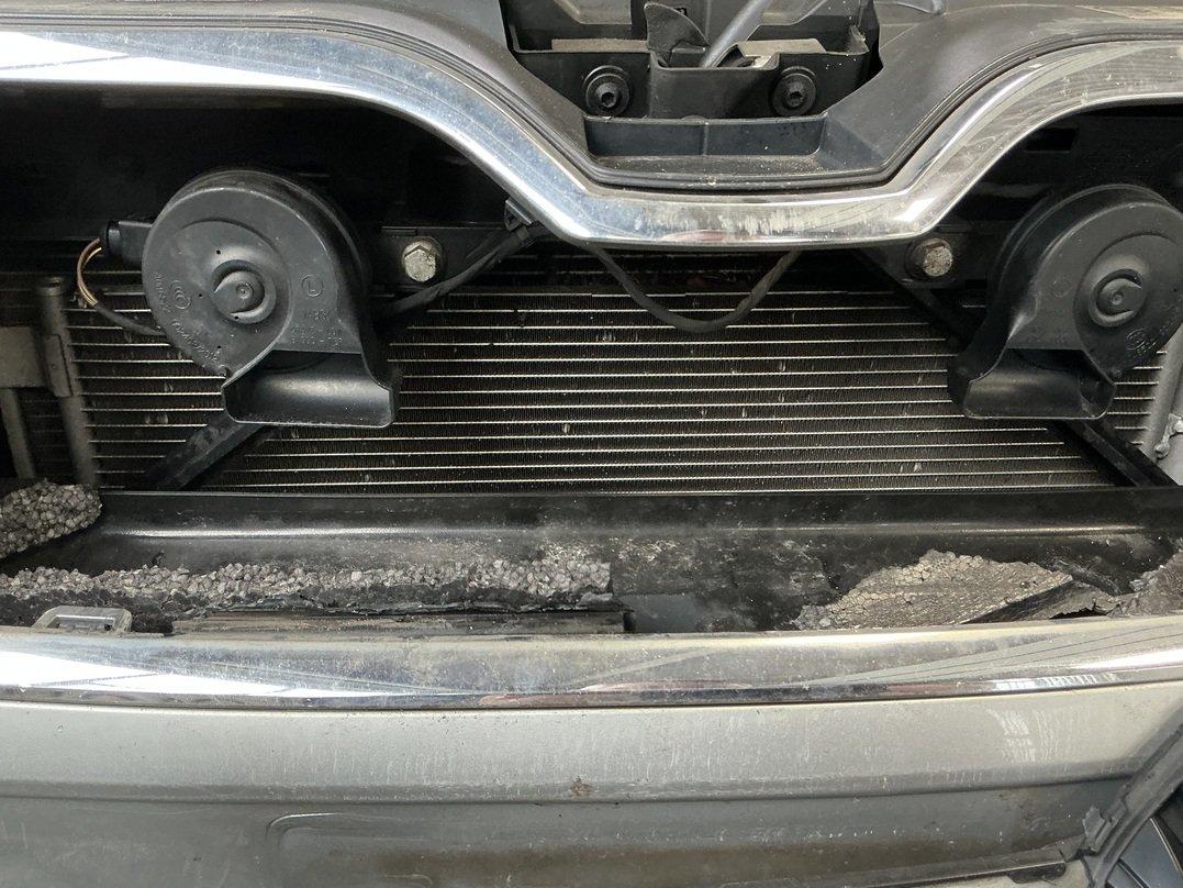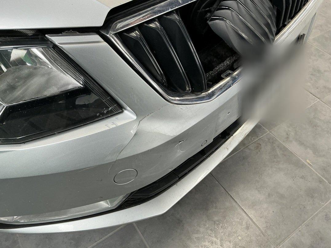 Choc frontal : Pare-chocs avant cassé. Calandre avant cassée. Capot moteur plié. Boîte à vitesses ne fonctionne plus. Batterie usagée complètement déchargée / Dommage préexistant : traces d'utilisation