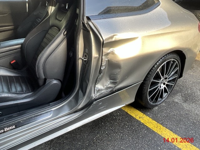 Beschreibung der Schäden: Fahrertür-, Türgriff-, SW- Rad- und Radaufhängung h.l. beschädigt