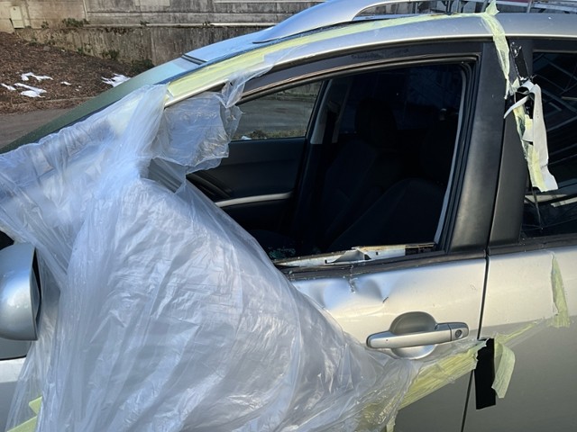 Türscheibe vorne links ist zerbrochen / beschädigt.