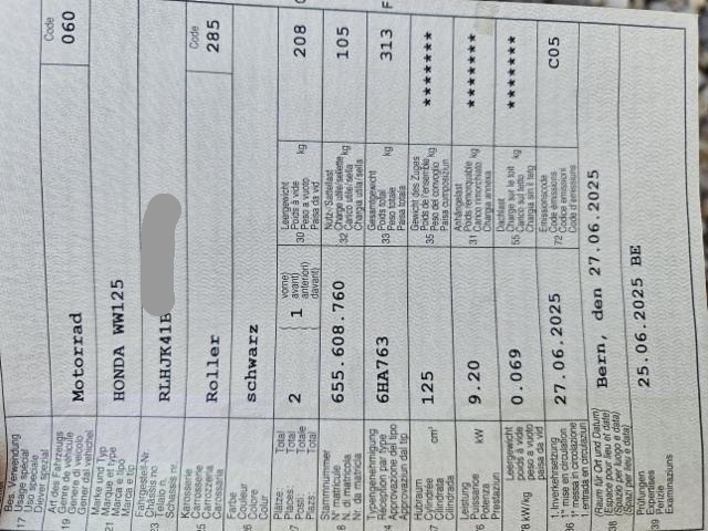 Vorschäden: - Kratzer Lenker rechte Seite - Verschalung rechts unten + Innenverkleidung Kratzer