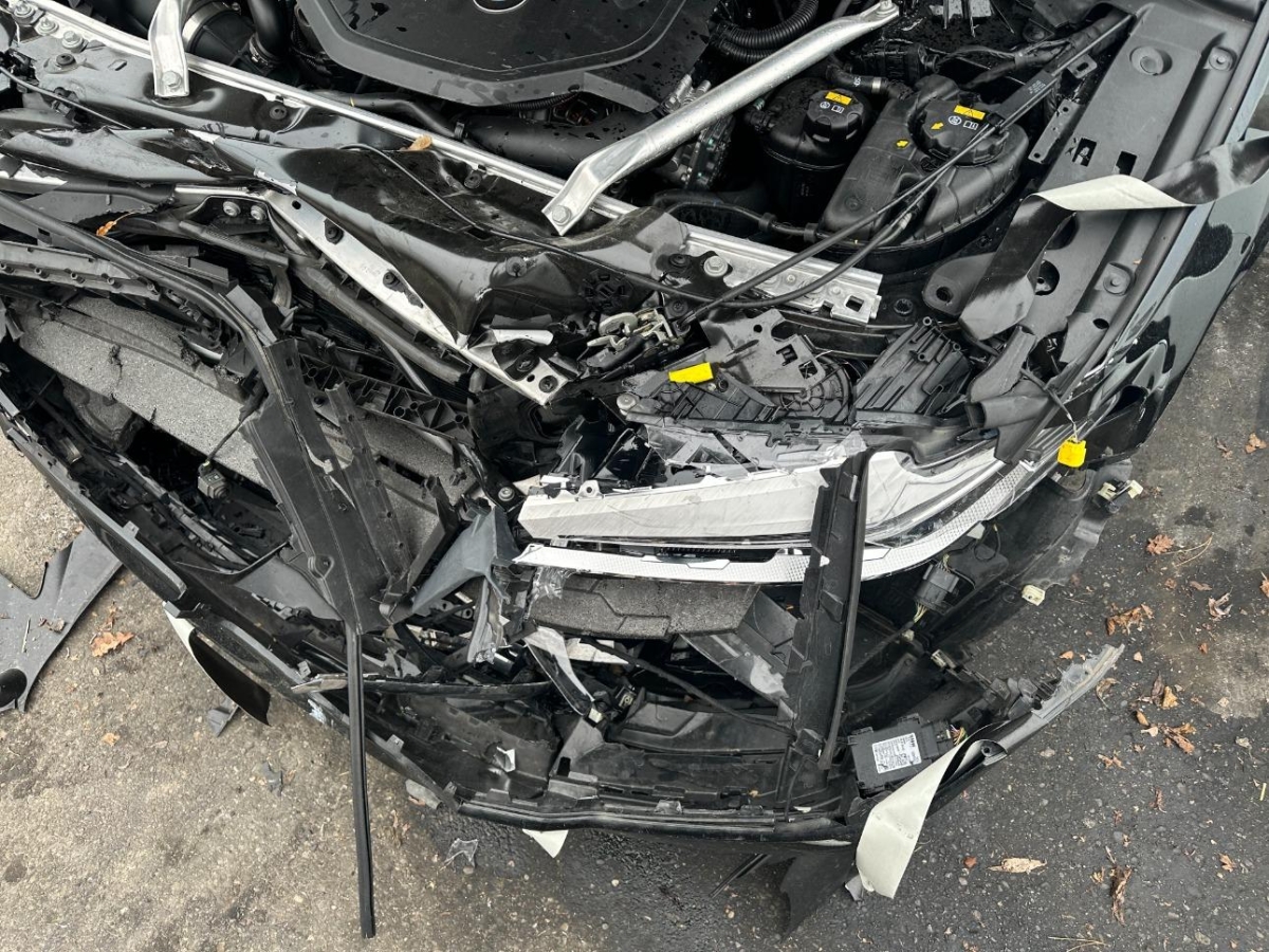 Airbag ausgelöst, Armaturenbrett, Front, Front links, Front rechts, Frontblech, Gurtstraffer ausgelöst, Interieur, Kabelstrang, Klimakühler, Kotflügel links, Kotflügel rechts, Kühler, Kühlgitter, Längsträger vorne links, Längsträger vorne rechts, Querträger, Radhaus vorne links, Radhaus vorne rechts, Scheinwerfer links, Scheinwerfer rechts, Schlossträger, Stosstange vorne