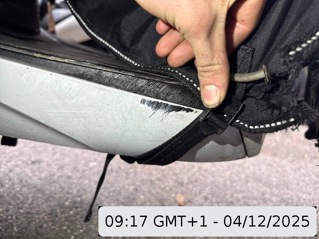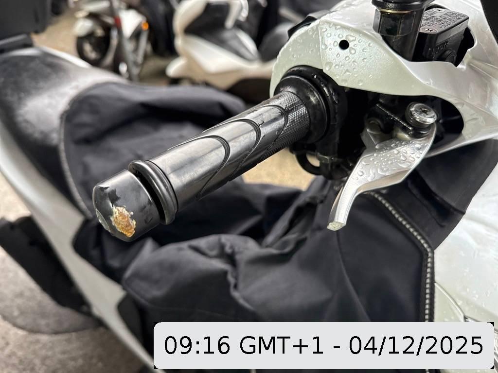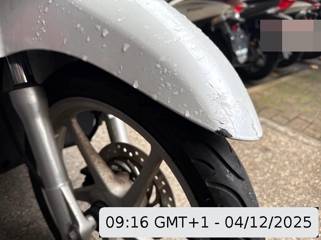 Auspufftopf, Aussenspiegel rechts, Front, Fussraster rechts, Gabelholm, Griff rechts, Lenkanschlag, Lenker, Rad vorne, Rahmen, Scheinwerfer, Schutzblech vorne, Seite rechts, Topcase, Verschalungen rechts, Verschalungen vorne, Windschutzscheibe