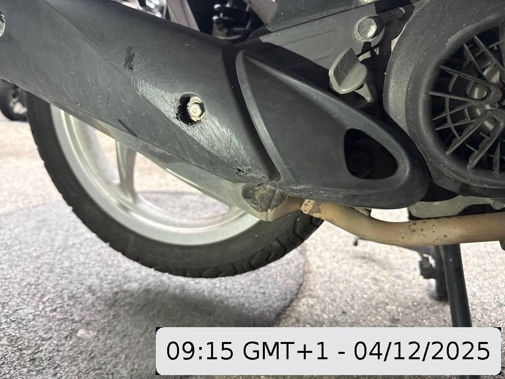 Fussraster links, Heckverkleidung, Motor, Motorgehäuse, Rad hinten, Rücklicht, Schutzblech hinten, Schwinge, Seite links, Sitz, Tank, Verschalungen links, Zündschloss