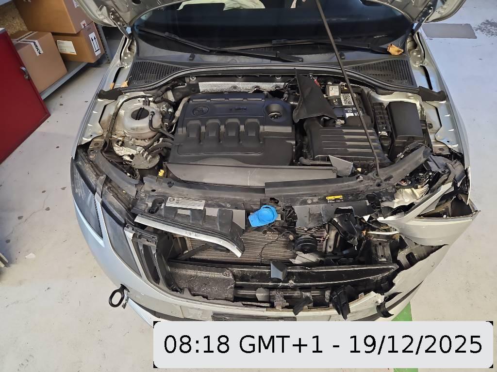 Airbag ausgelöst, Armaturenbrett, Diverse Anbauteile, Front, Frontblech, Frontscheibe, Gurtstraffer ausgelöst, Interieur, Klimakühler, Kotflügel links, Kühler, Kühlgitter, Ladeluftkühler, Motorhaube, Querträger, Radhaus vorne links, Scheinwerfer links, Schlossträger, Stosstange vorne