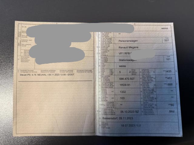 Fahrzeugdokumente vorhanden.