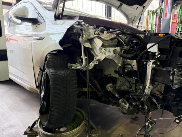 Rechte Seite beschädigt. Anstoss rechts im Bereich der A-Säule. Schweller rechts ist eingedrückt.
