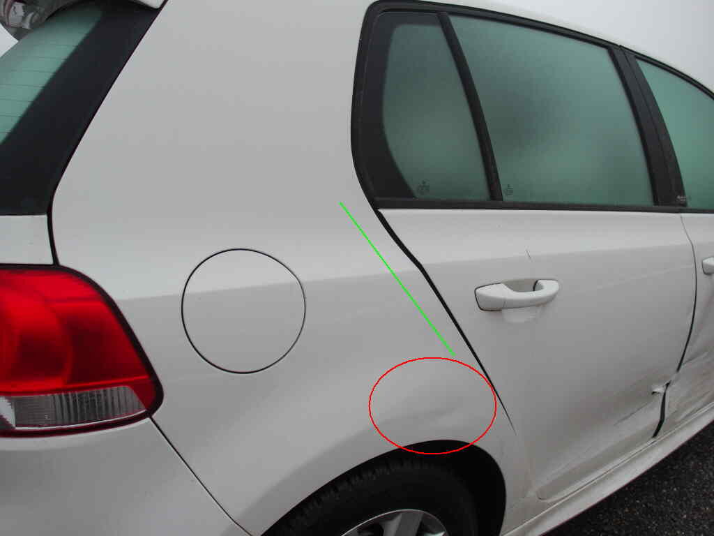 Vorschäden: Stossfänger v l und v r zerkratzt, Stossfänger h l und h r beschädigt, Verformung in Seitenwand r oben