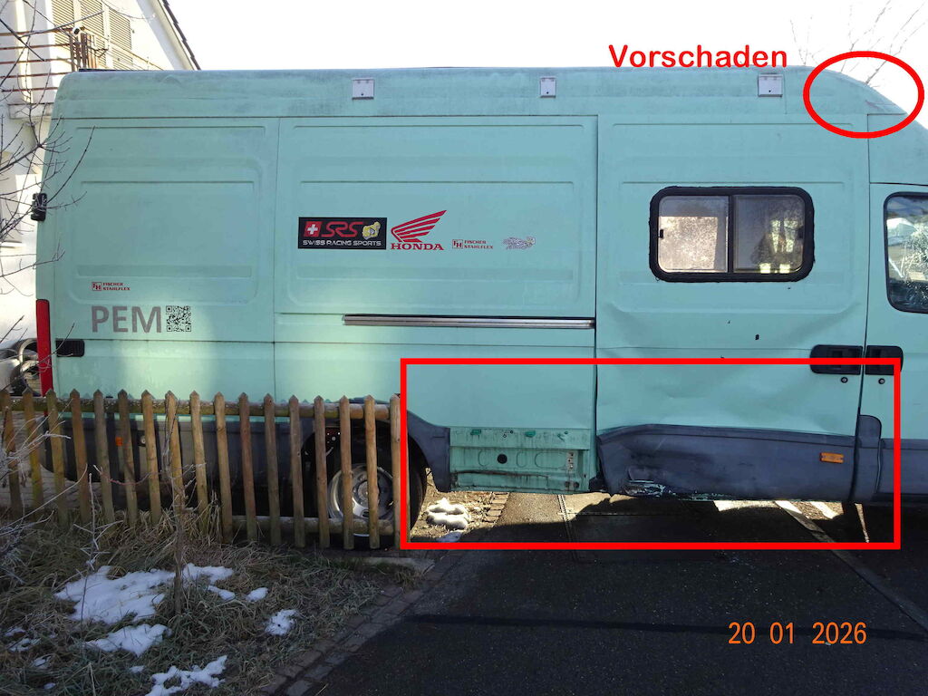 Schiebetüre rechts ers / Schweller rechts rep ggf Teilersatz / Sewitenwand HR vor Achse ers nichtunfallkausal: Dach Vore rechts oben leicht angefahren / Unterrostungen an div Stellen Farbe matt Klimaanlage ja kein Funktion Motor Getriebe Vorderachse Hinterachse Airbags ausgelöst: 0 unbekannt ( Abfallcode 16.01.04ak )