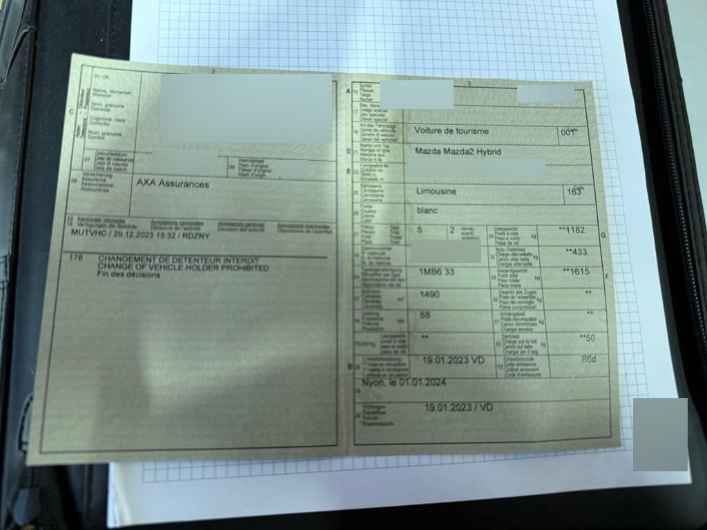 Licht: LED-Rückleuchten, Airbag: Vorhang vorn-hinten, Automatikwählhebel mit Position B, für eine erhöhte Motorbremswirkung, Assist: Notfall-Lenkunterstützung mit Fussgängererkennung, Wegfahrsperre elektronisch, Media: 7"-Touchscreen-Farbmonitor, Licht: Lichtautomatik, Assist: Spurhalteassistent LAS (Lane-keep Assist System) mit aktiver Lenkunterstützung, Airbag: Seitenairbags vorne, Lenkrad: Multifunktionslenkrad, Assist: Geschwindigkeitsbegrenzer, Assist: Kreuzungs-Notbremsassistent mit Fussgängererkennung, Licht: LED-Tagfahrlicht integriert in Scheinwerfer, EV Mode-Taste, für kurzzeitiges rein elektrisches Fahren, Assist: Verkehrszeichenerkennung TSR - Traffic Sign Recognition, Media: Bluetooth für Mobiltelefone und Audiogeräte, eCall, Lenkrad: Lenkrad längs- und höhenverstellbar, Drive Mode-Taste mit 3 Modi: Standard, Power und Eco, Assist: Elektronische Parkbremse mit Auto-Hold-Funktion und Berganfahrhilfe, Assist: Notbremsassistent mit Fussgänger- und Fahrraderkennung, Mittelarmlehne vorne mit Ablagefach, Lackierung: Uni-Lackierung, Zentralverriegelung mit Fernbedienung, Polster: Stoff-Ausstattung, Multidisplay, Garantie: Mazda-Garantie 6 Jahre/150 000 km, Klima: Klimaautomatik, Elektrische Fensterheber vorn mit Automatikfunktion, Licht: Nebelschlussleuchte, Media: Apple CarPlay und Android Auto, ABS, Airbag: Airbag Fahrer und Beifahrer, Aussenspiegel elektrisch verstellbar, Media: 2 Lautsprecher, Aussenspiegel in Wagenfarbe, Licht: Halogenscheinwerfer, Assist: Aufmerksamkeitswarner DAA (Driver Attention Alert), Assist: Dynamische Stabilitätskontrolle und Traktionskontrolle, Media: Audiosystem mit DAB+-Radio, USB- und 12 V-Anschluss, Räder: Stahlfelgen 15" 185/65 R15, Assist: Adaptive Geschwindigkeitsautomatik MRCC (Mazda Radar Cruise Control), Shark-Fin-Antenne in Wagenfarbe, Licht: Fernlichtautomatik (HBC, High-Beam Control), Bordcomputer, Licht: Drittes Bremslicht, Sitze: Fahrersitz höhenverstellbar, Servolenkung, Media: Instrumentenanzeige analog, Kosmetikspiegel auf Beifahrerseite, Intelligentes Stopp-Start-System, Sitze: Rücksitzlehnen getrennt abklappbar 60:40, Assist: Stauassistent mit Stop & Go-Funktion, Getriebe: e-CVT-Getriebe - Elektronisch gesteuertes e-CVT-Automatikgetriebe (stufenloses Planetengetriebe)