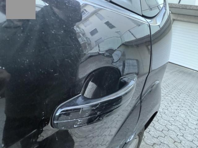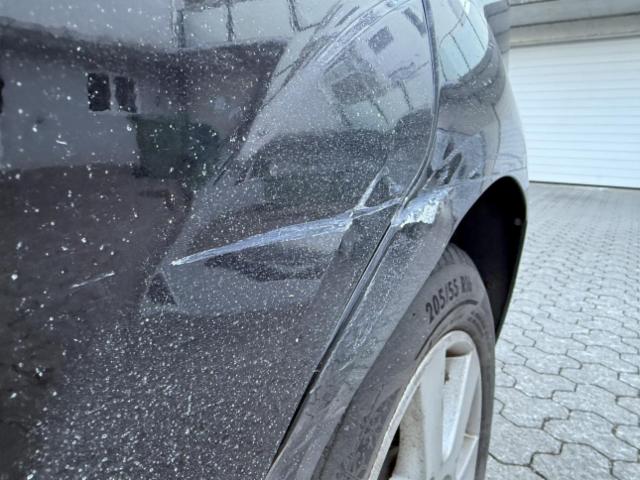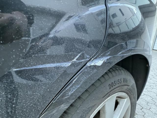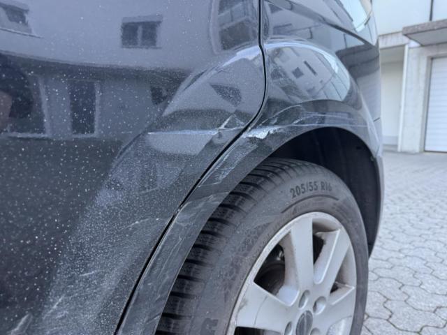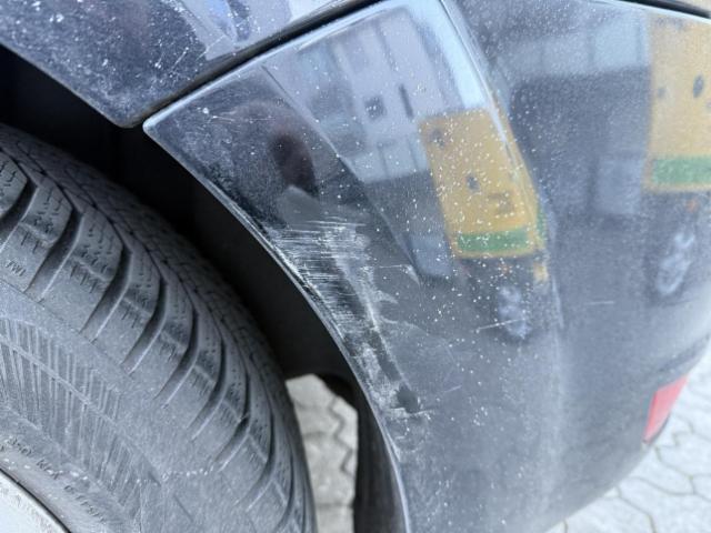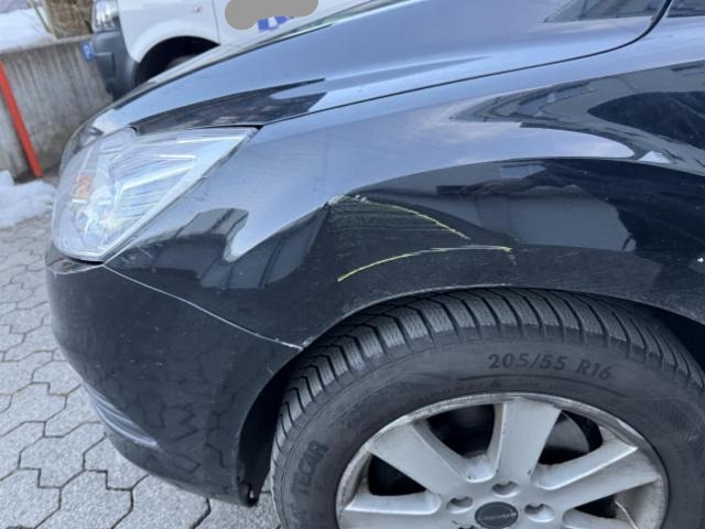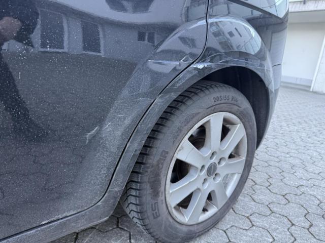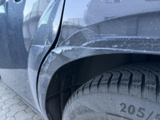 Linke Seite beschädigt. Tür hinten links ist eingedrückt.