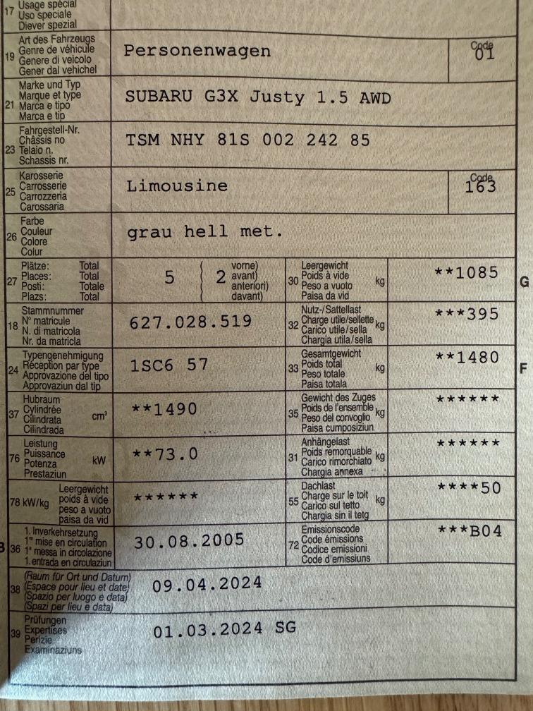 Letzte MFK am 01.03.2024 Letzter Service am 12.11.2024 bei 209'988Km Winterreifen mit ca. 4mm Profiltiefe Bekannte Mängel: - Dellen, Kratzer, Korrosion und Gebrauchsspuren (siehe Fotos) - Tür entriegelung teilweise Stöhrung (nicht weiter untersucht) - Getriebe defekt (Allrad keine Funktion) Kein Werkstatttest und keine Probefahrt durchgeführt! Jede Gewährleistung, soweit nach Gesetz möglich, wird wegbedungen. Insbesondere sind Wandelung und Minderung ausgeschlossen. nach der Zusage muss das Fahrzeug innerhalb von 5 Arbeitstagen abgeholt werden, ansonsten werden Standgebühren in Höhe von CHF 50.- pro Tag in Rechnung gestellt.