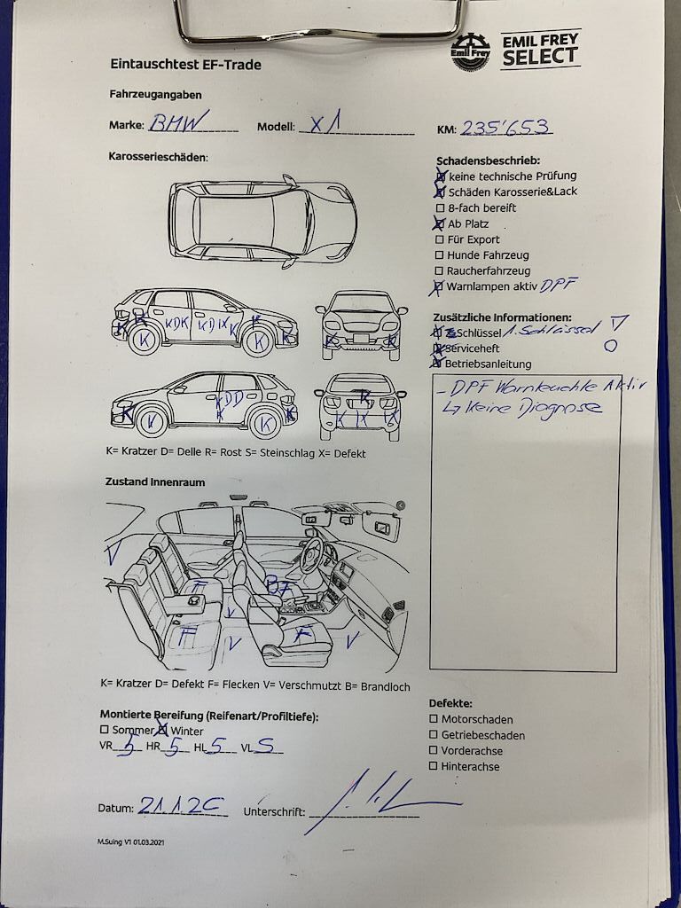 Keine technische Prüfung (Werkstatttest) vorgenommen Diverse Schäden an Karosserie/Lack. Fahrzeug ab Platz, ohne Garantie und Aufbereitung. DPF/FAP Filter nicht kontrolliert Es leuchten Warnlampen während des Betriebs.DPF Warnlampe 1 x Schlüssel vorhanden Motor Getriebe Vorderachse Hinterachse Airbags ausgelöst: 0 Nein ( Abfallcode 16.01.04ak )
