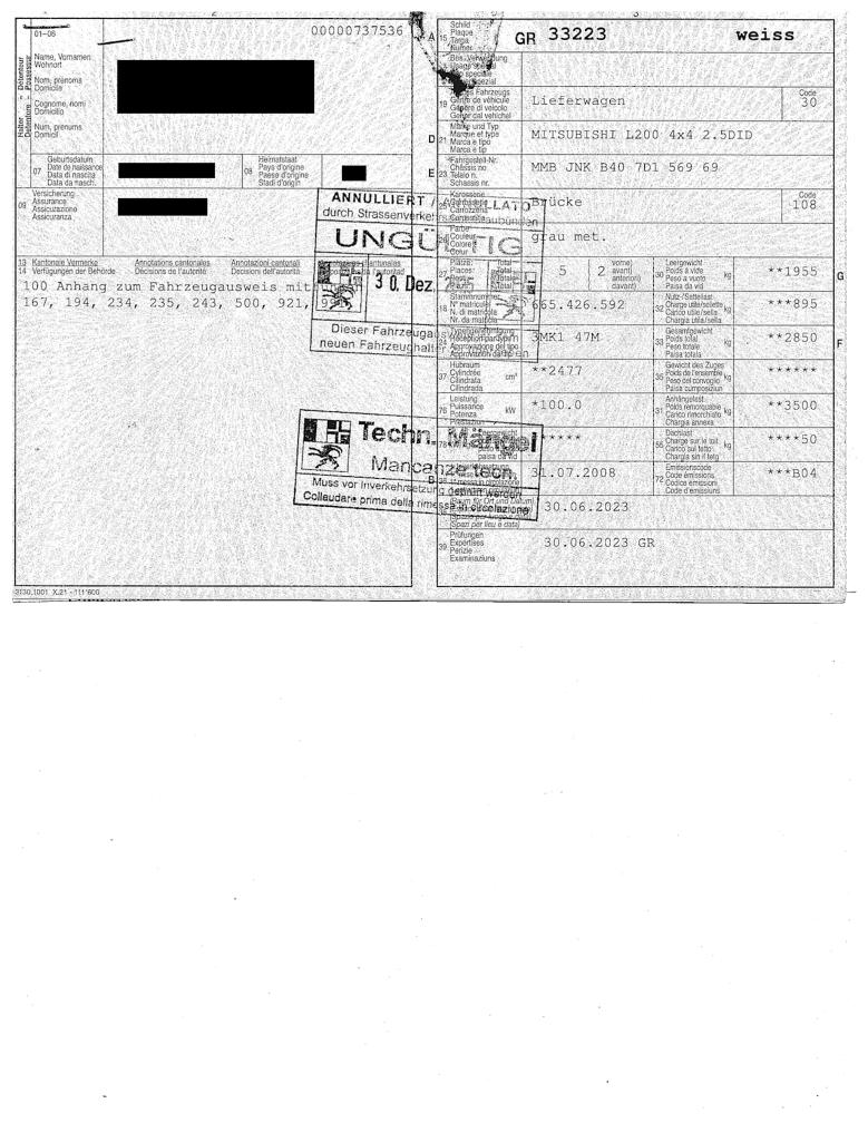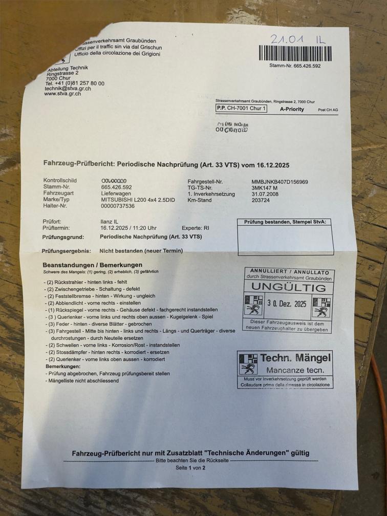 Letze Service: 05.07.2023 185'310km Letze MFK: 30.06.2023 Fahrzeug hat diverse Mängels (siehe Bilder) Zwischengetriebe Schaltung blockiert Motor und Schaltgetriebe lauft einwandfrei
