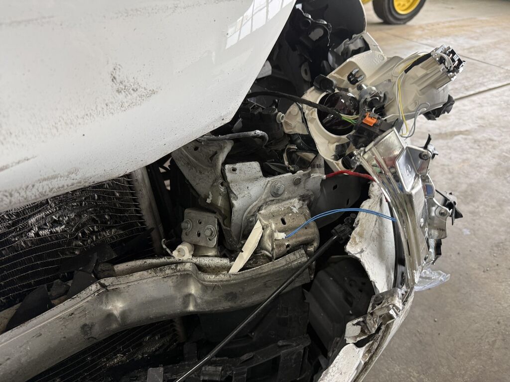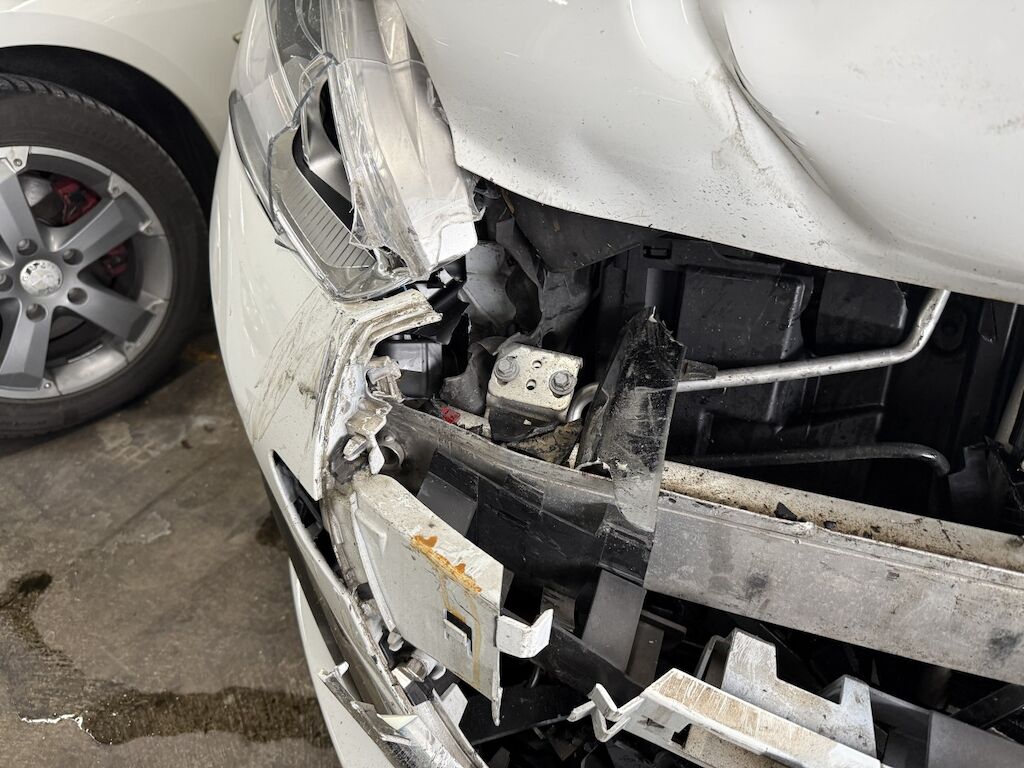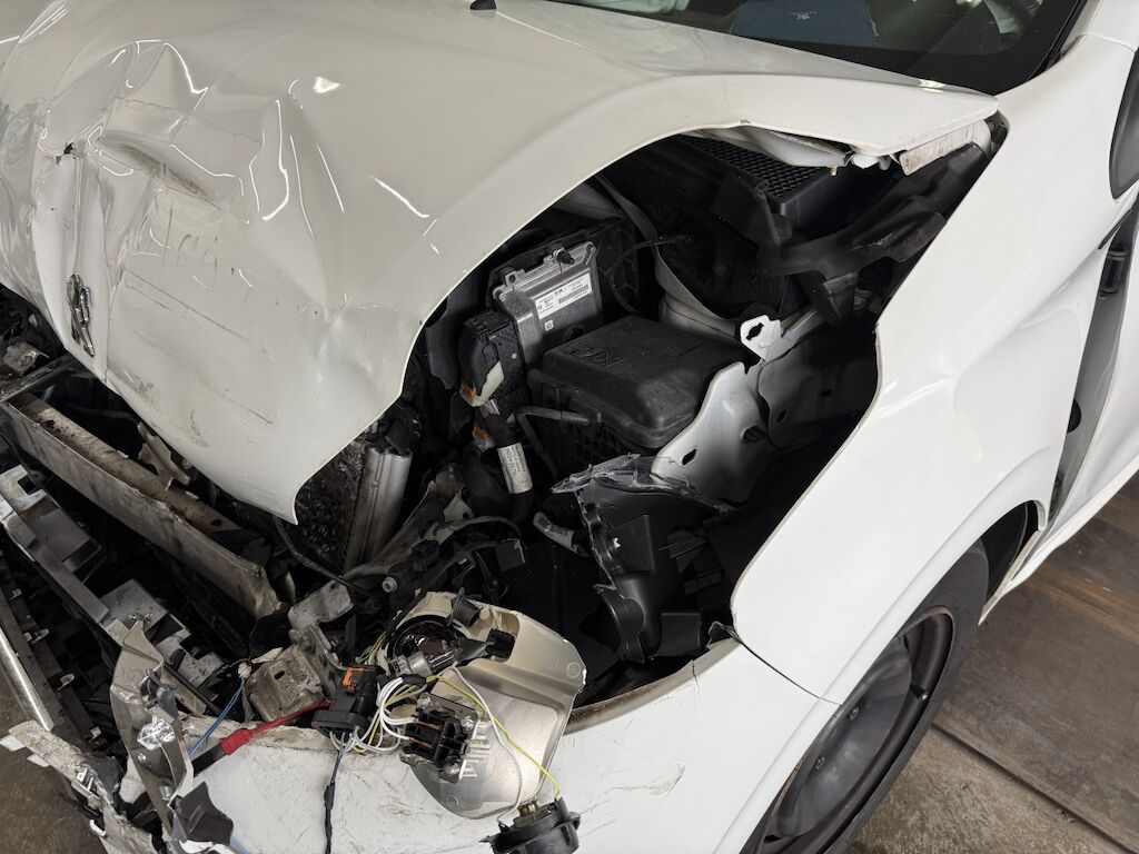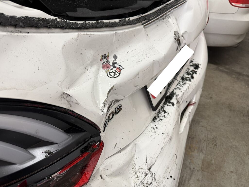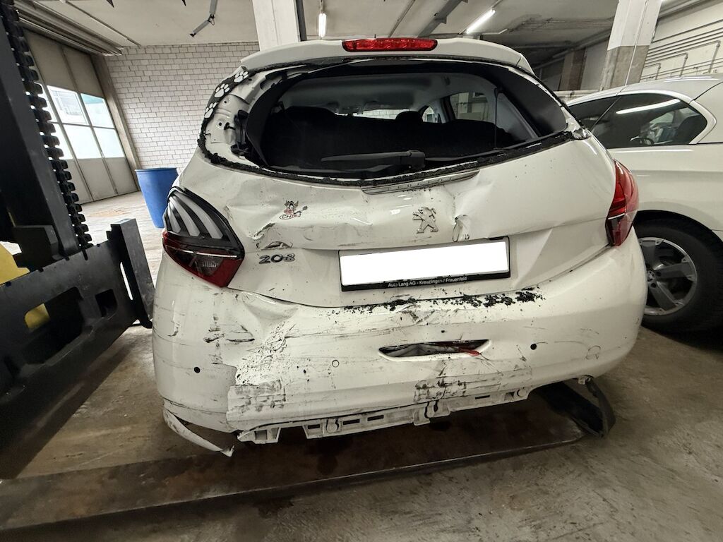 Frontschaden: Front grossflächig eingedrückt und diverse Teile zerstört. Heckschaden: Heck nach vorne verschoben ( Türspalt hinten links). Grossflächig eingedrücktes Heck durch massiven Aufprall. Motor Getriebe Vorderachse Hinterachse Airbags ausgelöst: 2 unbekannt ( Abfallcode 16.01.04ak )