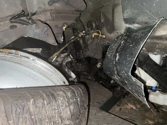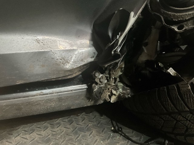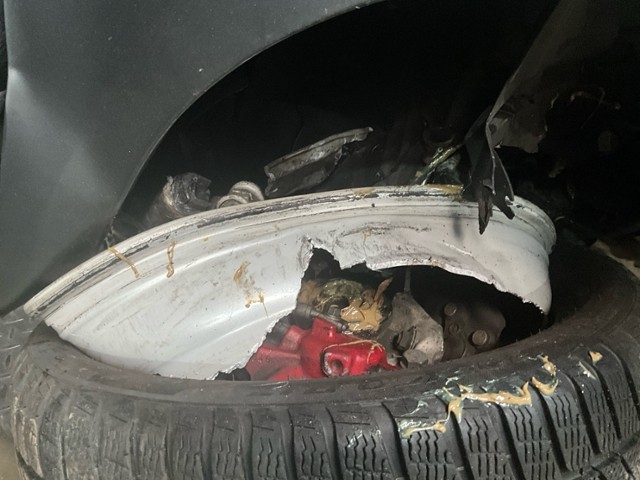 Aufhängungsteile vorne rechts beschädigt. Risiko Vorderachse. Risiko Lenkung.