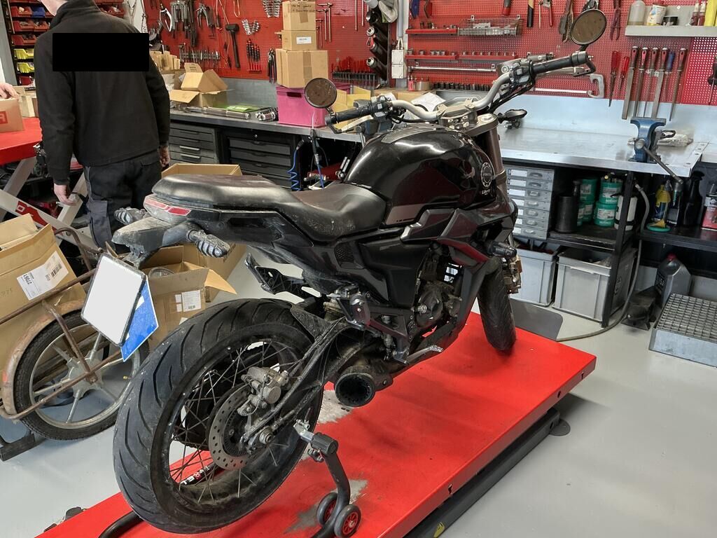 Réservoir plié Levier de frein râpé, plié Guidon râpé, plié Carénage latéral droit plié Carter moteur fissuré cassé Bras oscillant plié Motor Getriebe Vorderachse Hinterachse Airbags ausgelöst: 0 unbekannt ( Abfallcode 16.01.04ak )