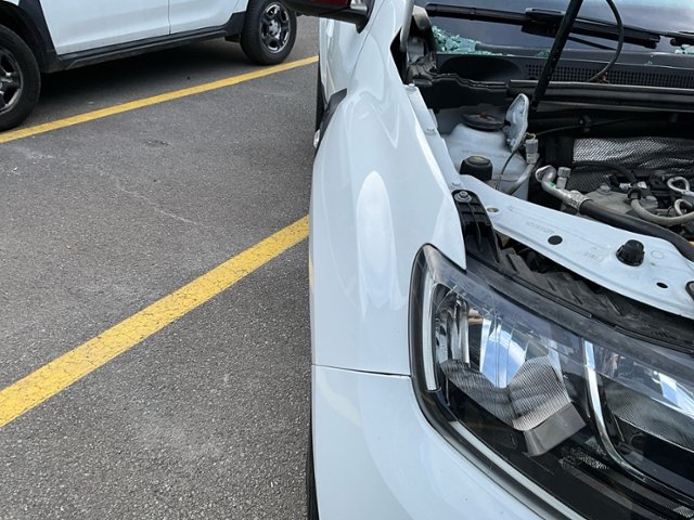 Front eingedrückt. Front links eingedrückt. Frontblech/Maskenblech eingedrückt. Längsträger vorne links gestaucht.