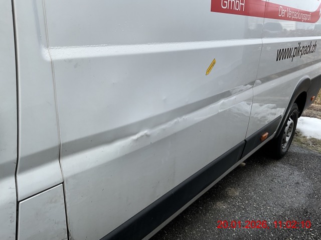 Beschreibung der Schäden: Nockenwelle blockiert, Motorschaden. Vorbestandene Schäden: Vorne rechts: Stossfänger vorne rechts und Kotflügel deformiert. Hinten rechts: Seitenwand hinten rechts deformiert. Vorne mitte: Frontscheibe gerissen. Mitte (Dach/Boden): Boden von Laderaum deformiert. Hinten mitte: Stossfänger hinten rechts deformiert. Hinten links: Seitenwand links deformiert.