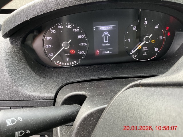 Assist: Rückfahrkamera, Aussenspiegel elektrisch beheizbar und verstellbar, Ersatzradhalterung mit Seilzug, Fahrwerk: Hinterachse mit Zusatzfederblatt, Klima: Klimaanlage manuell vorne, Media: Radio, MP3, DAB, 7", Paket: Pack Easy:, Sitze: Beifahrerdoppelsitz + 3-Punkt-Sicherheitsgurten, Sitze: Fahrerarmlehne mit Lendenstütze, Trennwand fix ohne Fenster