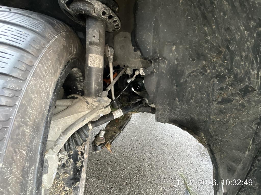 Beschreibung der Schäden: Front Mitte und unten stark eingedrückt; Aufhängung vorne rechts teilw. und vorne rechts kompl. abgerissen; Radhaus-Schweller vorne links eingedrückt; Batterieboden hinten Delle; Längsträger vorne links oben deformiert/eingedrückt;