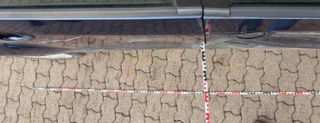 Rechte Seite beschädigt. Anstoss rechts im Bereich der B-Säule. Schweller rechts ist eingedrückt. Tür vorne rechts ist eingedrückt. Tür hinten rechts ist eingedrückt.