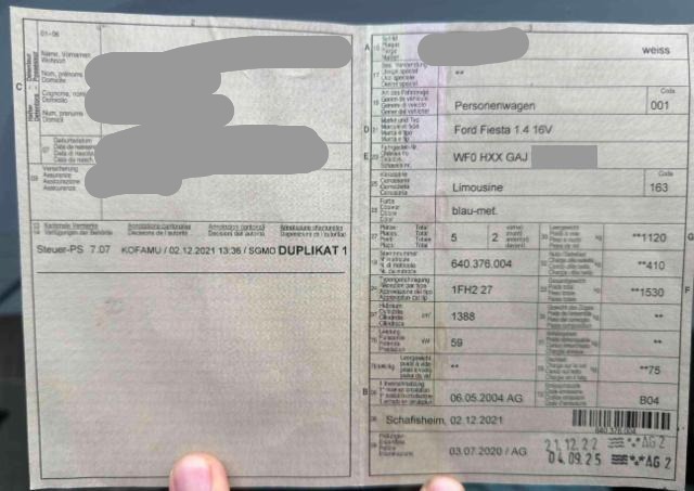 Fahrzeugdokumente vorhanden.