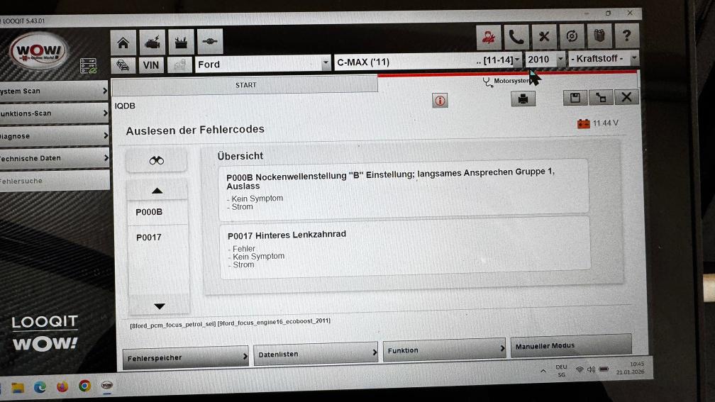Warnlampe leuchtet (Motokontrollleuchte brennt, Fehlercodeausdruck gemäss Bildern)